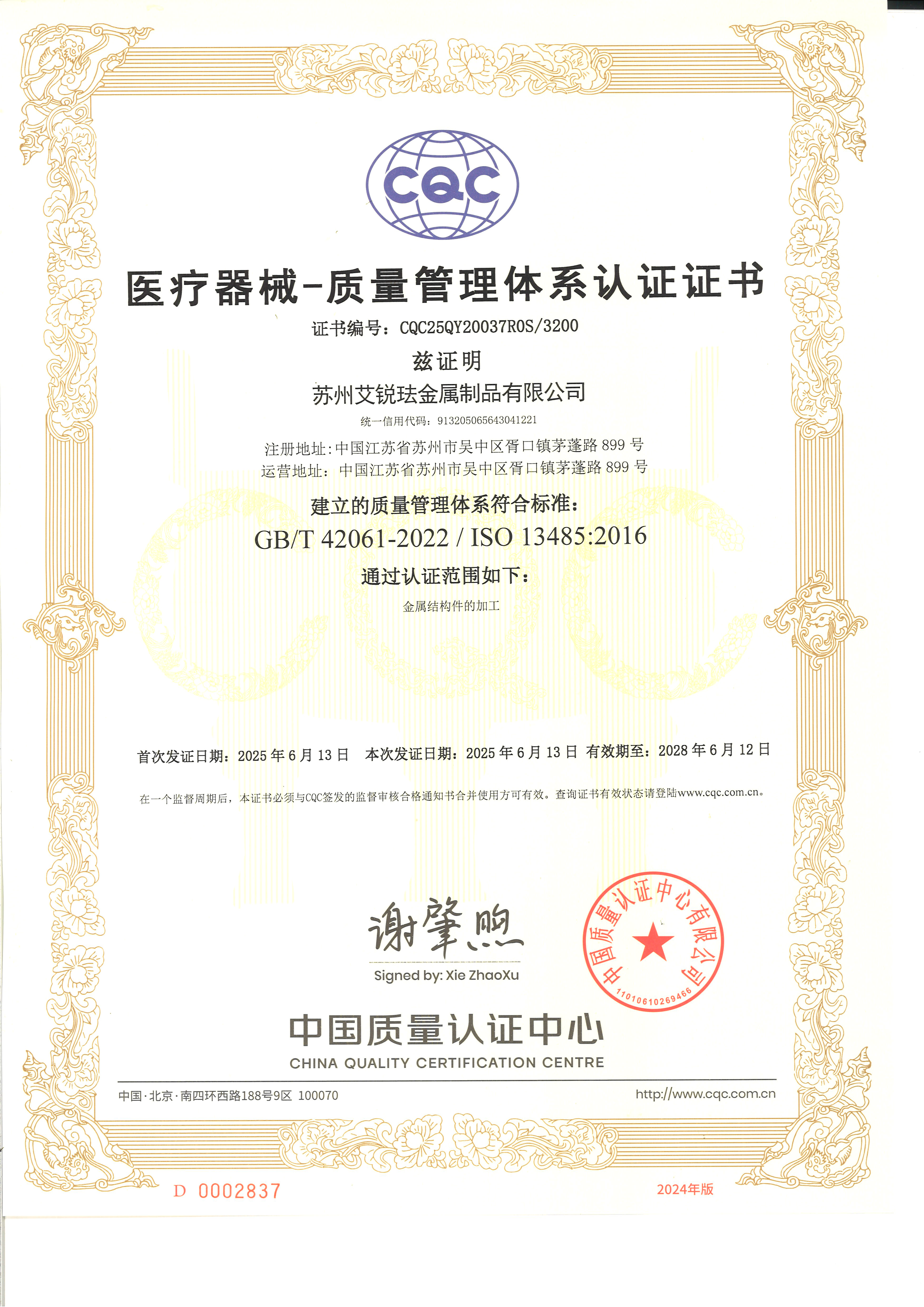 艾銳琺公司以技術為核心,向客戶提供優質的產品、準時的交期、合理的價格、優質的服務從各方面不斷開拓進取,服務于客戶,公司實行ISO9001&IATF16949質量保證體系,致力于打造國內一流的精密鈑金制造公司。